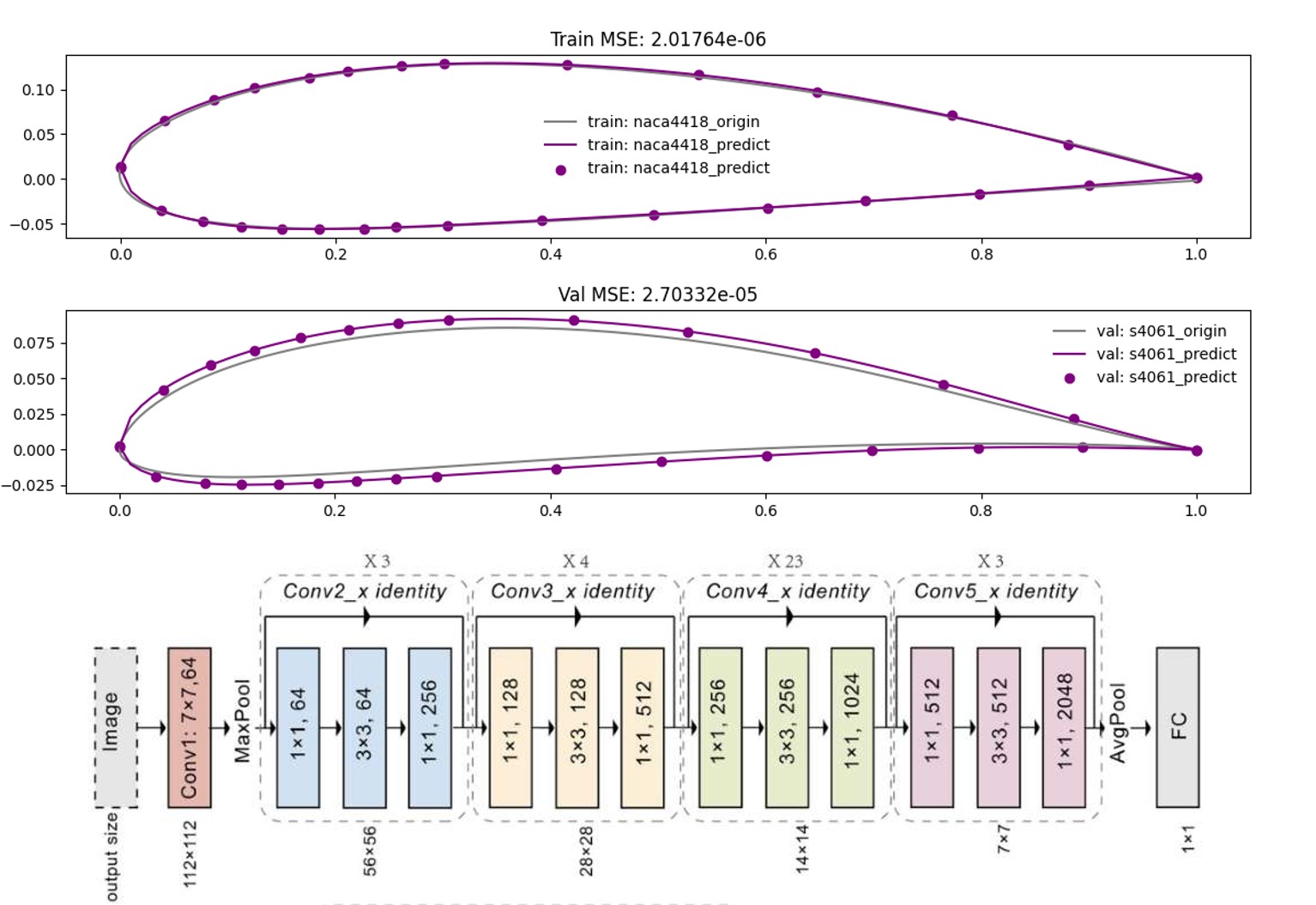 A ResNet-based CNN design for inverse design of airfoils, trained on a dataset of 10,000 airfoils